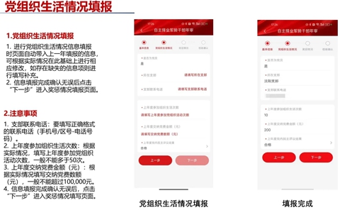 依次填报基本信息、党组织生活情况、奖惩情况模块。