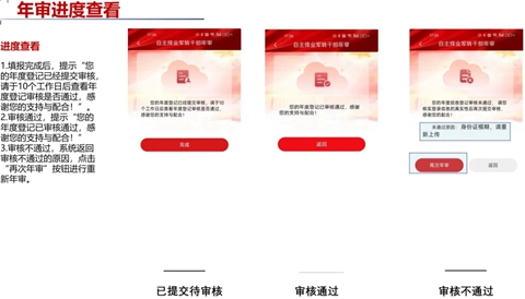 提醒:若您之前正常年度登记签到过,以上三个模块均有信息,若无信息修改情况,点击“下一步”直至“信息确认”,模块。
