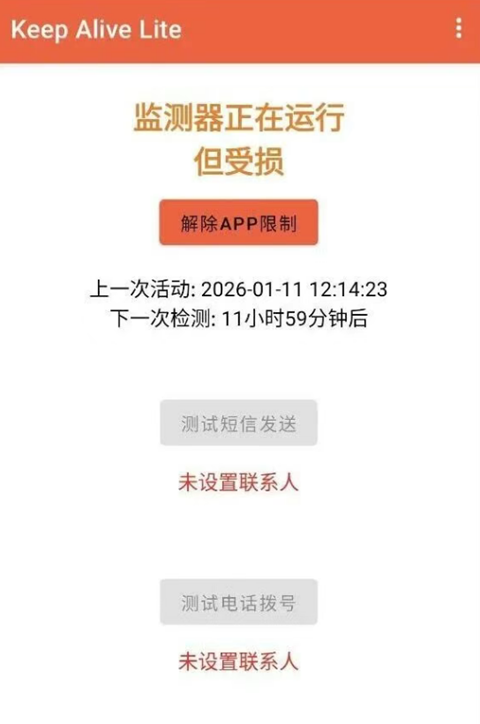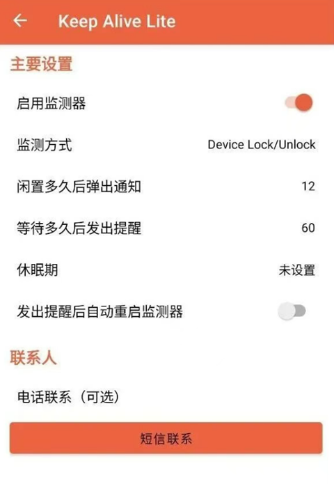 如果您在指定时间内未使用设备,KeepA live将通过短信向一位或多位用户发送自定义消息。