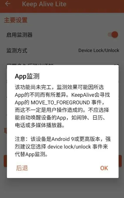 KeepAliveLite需要使用情况访问权限,该权限可以跟踪你正在使用的其他应用和使用频率。也就是说,你不需要每日打卡,只需要每日正常使用手机,就能证明自己活着。