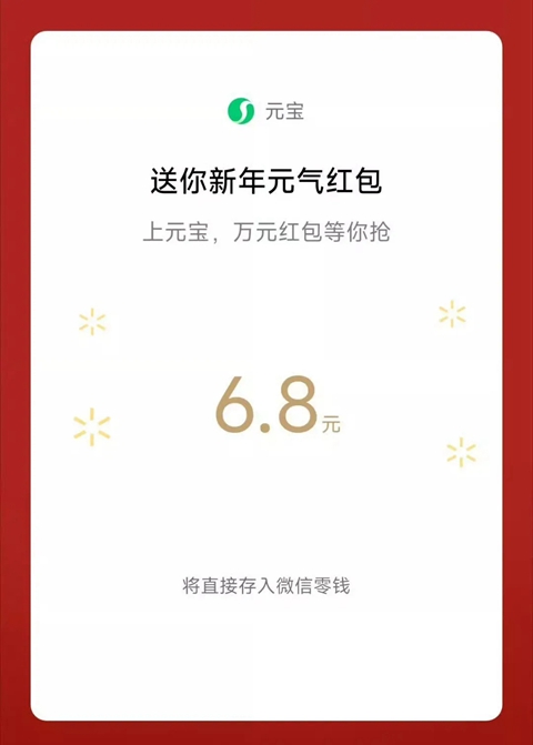 点击福袋就有几率获得元宝的新年红包,会直接存到微信零钱。
