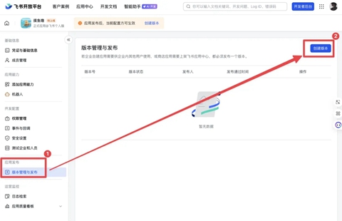 创建版本发布。左侧导航栏版本管理与发布>创建版本