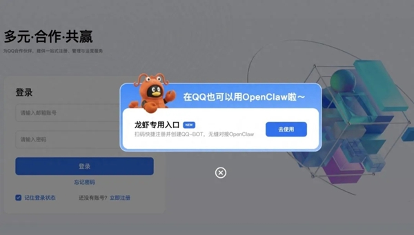 允许通过官方渠道快速创建能与OpenClaw联动的QQ机器人。