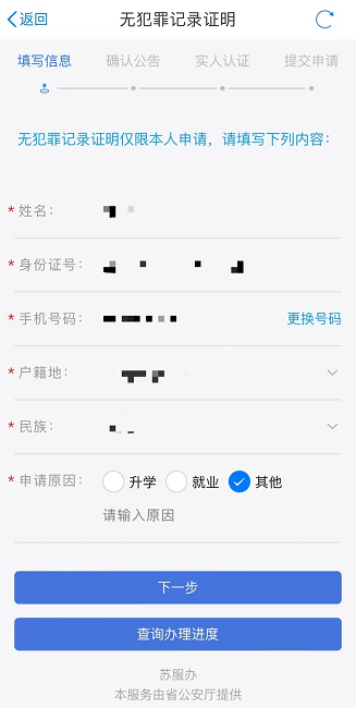 按要求填写信息,进入下一步,阅读无犯罪记录证明申报须知。