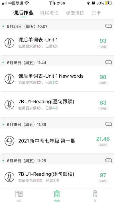 3、点击菜单“作业”进入作业列表页面(若有老师布置作业,则显示),可以完成或查看老师布置的作业。