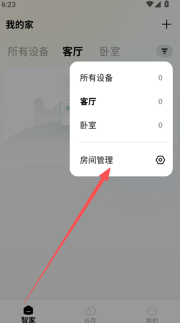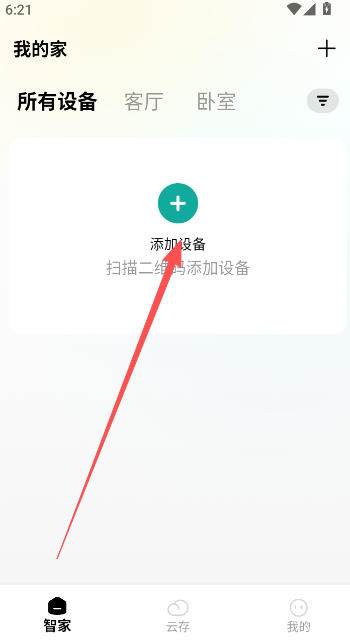 进入APP后,点击左下方第1个选项卡“家",切换到该页面后点击右上方"+“按钮,进入设备添加页面。