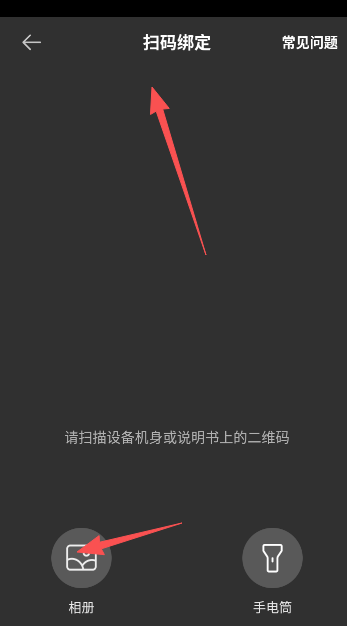 4、扫描已购买产品设备背部二维码绑定,或是在相册中选择图片界面登录。