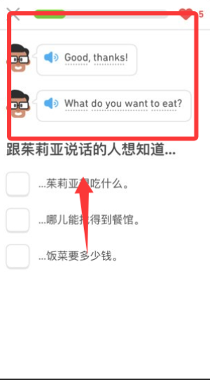 2、完成基础课程,跟着系统指引进行单词认知和句子匹配,通过看图选词和听音辨义来建立最初的语感。