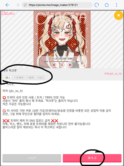 4、这个作者提醒我们此模板可以将捏脸后生成的图作个人用,但不可商用,也不可加工。个人使用的表现形式常见为,可以作为人设、头像等。如果想了解更多的范围限定,那么你需要用翻译器翻译一下,以防构成侵权,进入页面后与普通的捏人方法一样,但有些衣服必须改变颜色才能改款式。