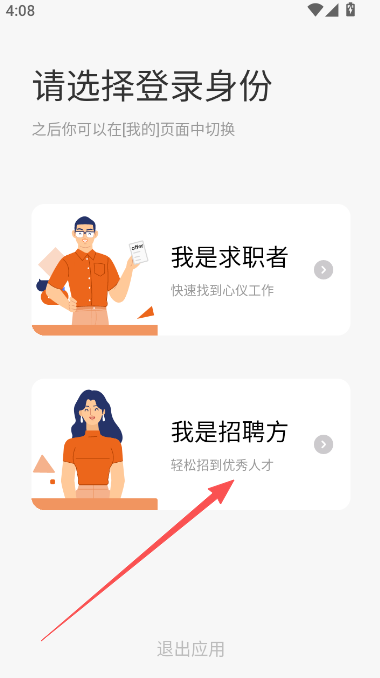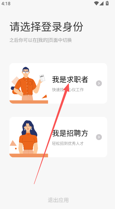 1、切换用户身份为求职者。