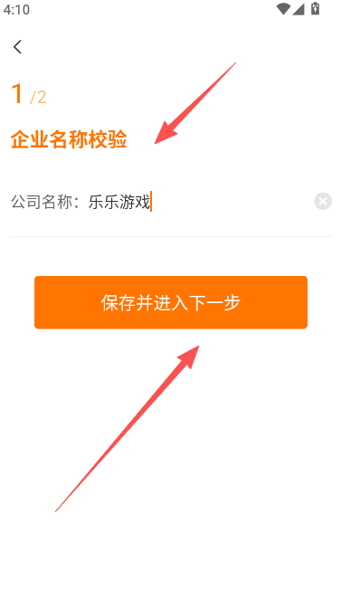 4、在企业名称校验栏输入公司名称,并点击下一步。