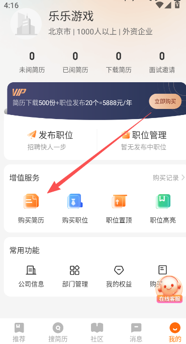 1、中国包装印刷人才网app购买简历,可在我的页面中选择增值服务下方的购买简历选项。