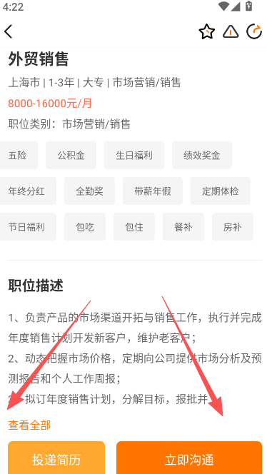 5、投递简历并立即沟通。