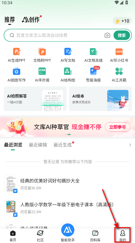 上传入口:登录百度文库App,点击首页右上角“上传我的文档”,选择本地文件(支持批量上传,最多20篇,每篇不超过20MB)。