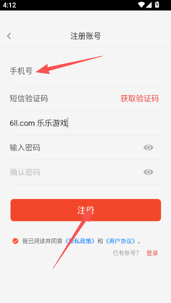 2、输入本人所使用的手机号码,填入短信验证码信息以及用户名称,设置完密码以后注册成功。