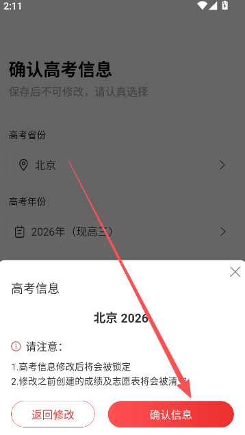 2、确认本人或是孩子的所要报考的省份以及年份信息。