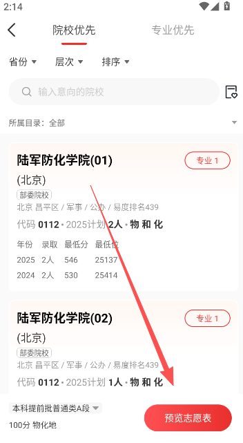 6、它会根据你的成绩为你推送可报考的院校,点击下方还可以预览志愿表信息。