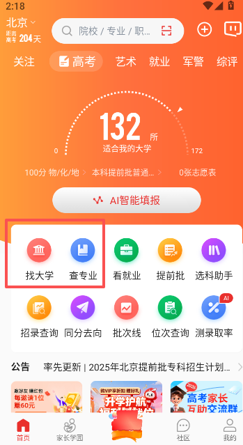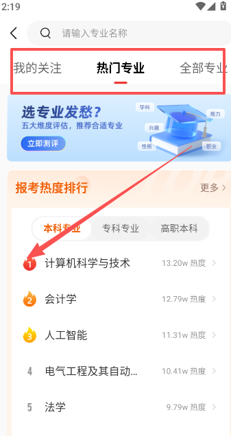 3、找专业,主要为未来毕业就业打算做准备,帮助大家报考最适合就业的当下热门学科专业。