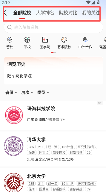 2、找大学,主要发布全国院校的排名、院校对比情况。