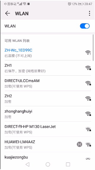 1、打开手机网络设置,连接ZH-W开头的WIFI信号
