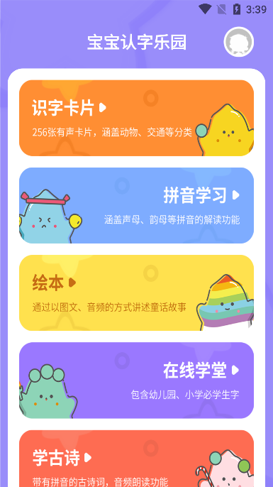 1、提供的学习内容十分全面,不仅包括汉字和拼音,还包括中英文和古诗等多种学科内容