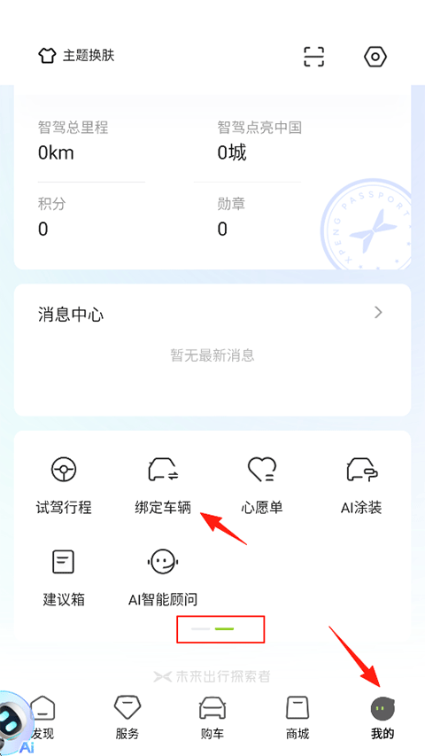 1、打开小鹏汽车APP,点击我的,滑动下方功能区找到绑定车辆功能;