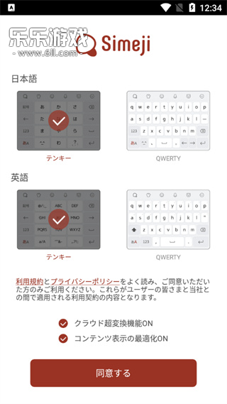 4、选择适合自己的键盘,然后点击同意;