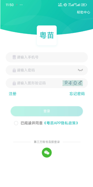 1、打开粤苗APP,可以通过绑定微信的方式直接登录;也可以注册账号,注册完成后,用注册的账号密码登录即可,操作流程如下图所示: