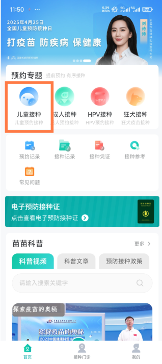 2、填写完成之后就可以返回首页点击hpv疫苗预约。
