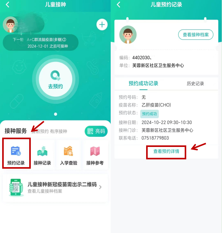 预约接种信息提交成功后,接种当天到本门诊现场接种,在APP上点击“预约记录”