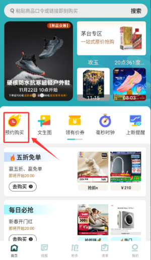 3、通过主界面预约购买功能,参与商品抢购活动。