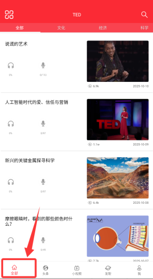 3、查看全部短篇演讲后做配套的理解测验,在主题分类中探索你感兴趣领域的内容,坚持打卡提升英语综合能力。
