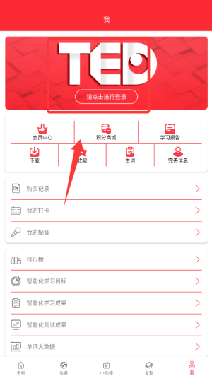 1、打开ted英语演讲官方app,点击“我的”,在这个界面找到“会员中心”,点击进入;