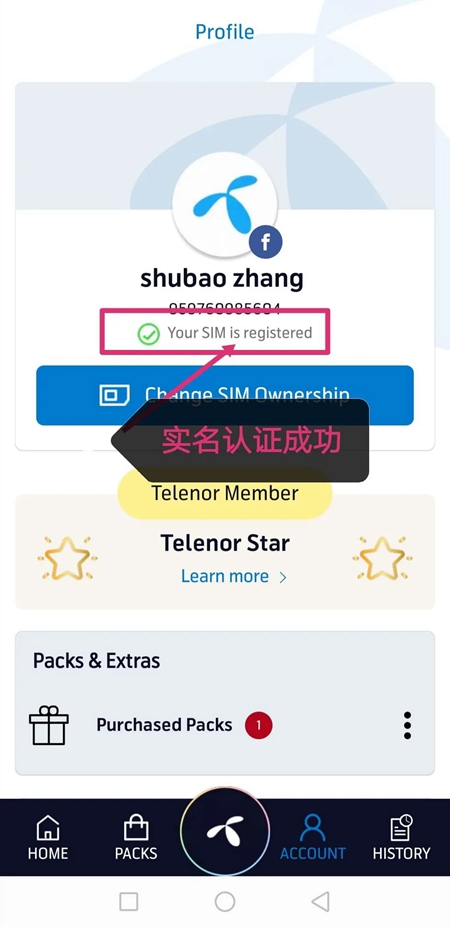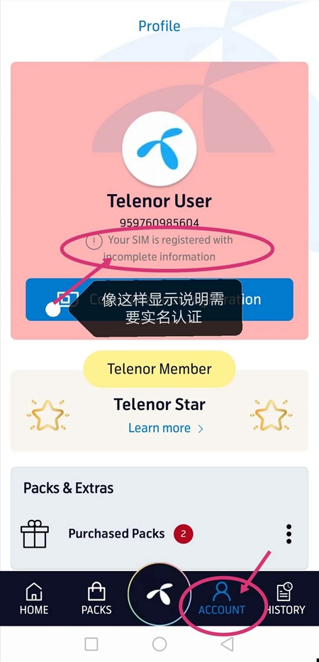 ①登录APP查看,显示如下图说明您的电话卡需要实名;