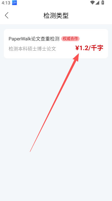 3、检测类型中,有详细说明查重价格,1.2¥/千字。
