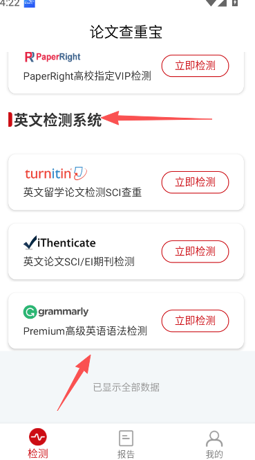 目前仅支持中文简体、繁体,暂不支持英文论文检测。