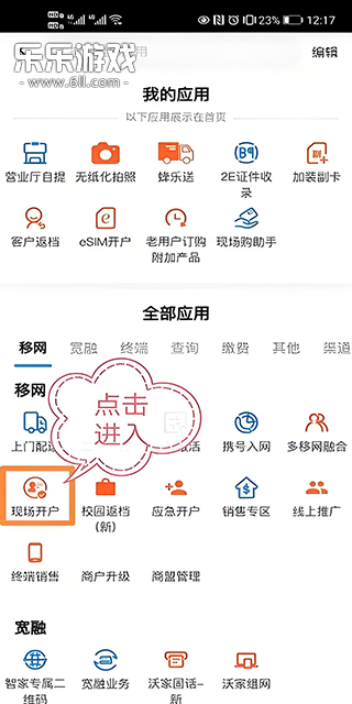 2、进入“应用”界面后,点击“全部应用”下面的“现场开户”;