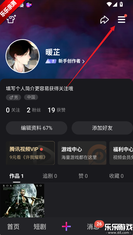 2、进入个人主页后,点击右上角的“三条横杠”菜单;