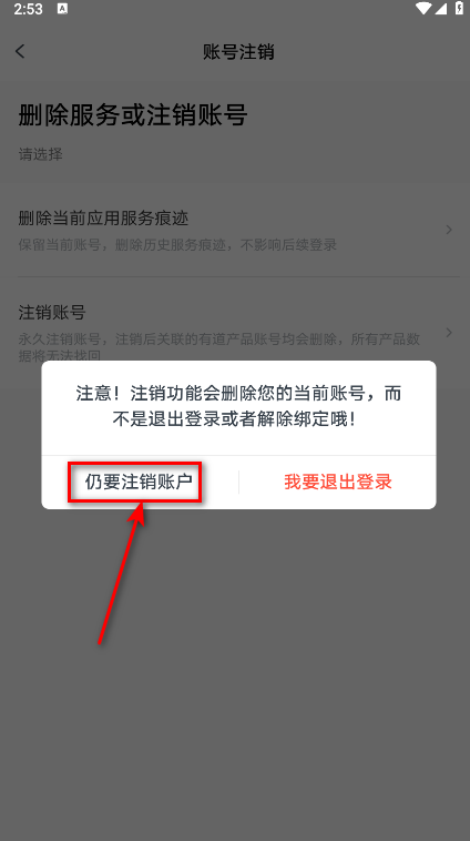 6.点击仍要注销账号