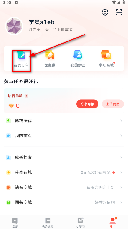 2.首先点击我的订单