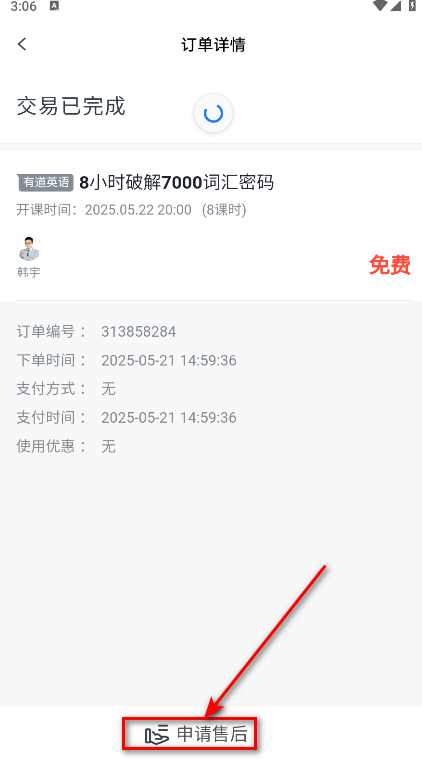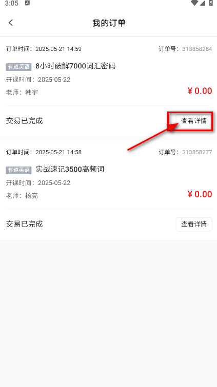 4.找到你要退课的订单,点击查看详情