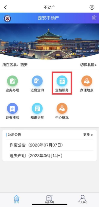 2、首页点击不动产登记,进入页面后选择查档服务。