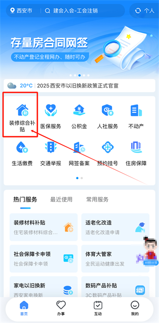 1.首先下载并进入i西安app,点击【装修综合补贴】进入