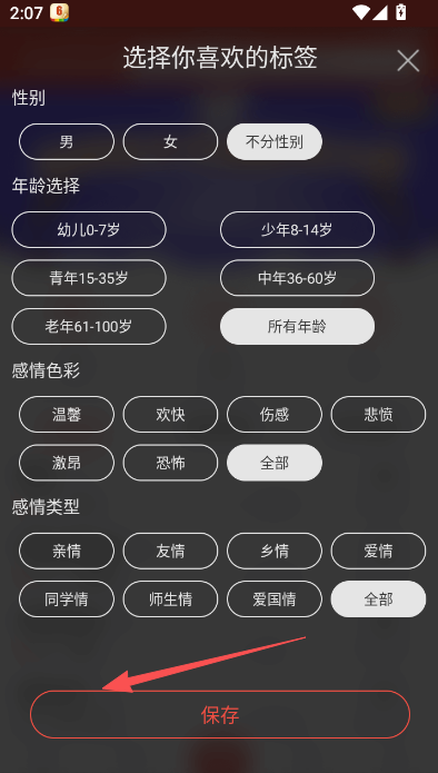 2、注册用户账户正式进入之前,选择你感兴趣的诗词朗诵标签。