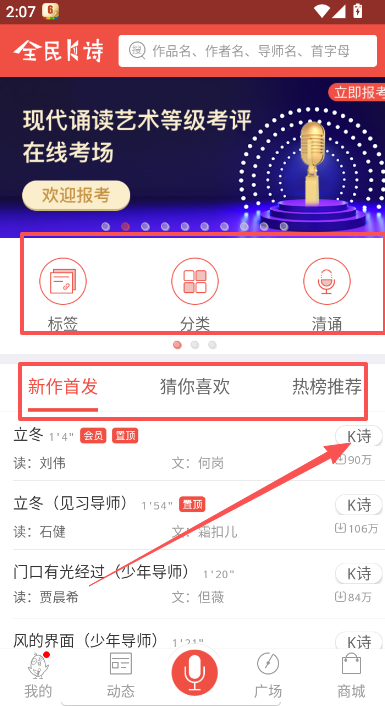 1、K诗模式:支持配乐朗诵与清诵模式,满足不同用户的录制偏好。