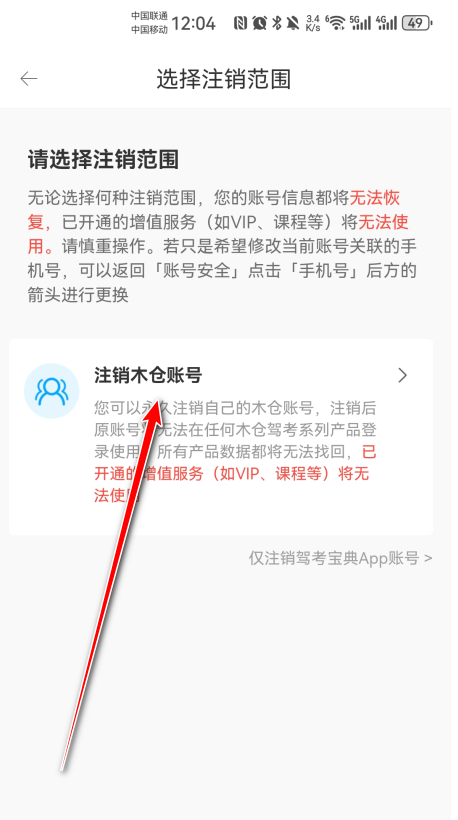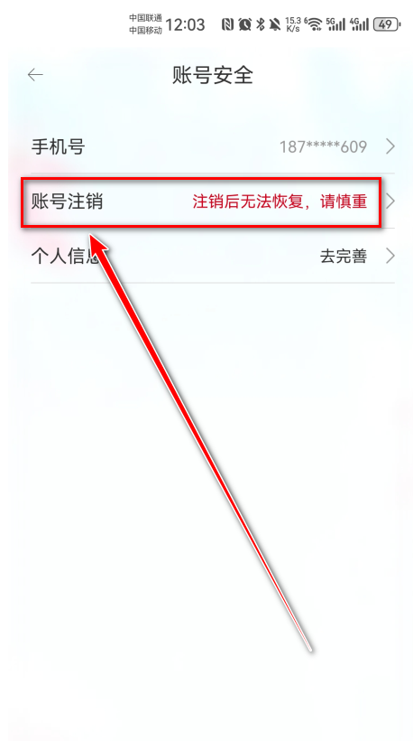 6、点击“注销木仓账号”。
