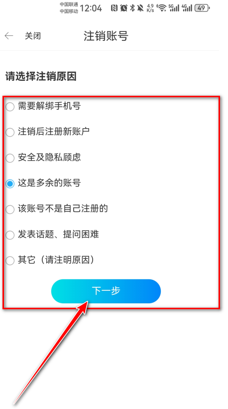 8、勾选注销原因,然后点击“下一步”。