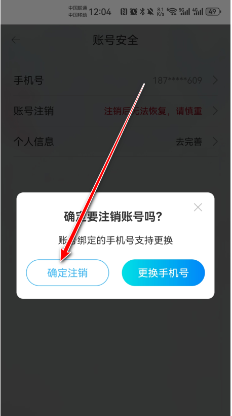 9、输入验证码,点击“确定注销”。完成这些步骤后,账号即可成功注销。