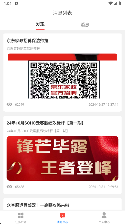 京客服app这是一款专业的办公兼职平台,在这个平台也是带来了全面的服务内容,广大用户都是可以随时发布招聘信息的,您可以在平台浏览到众多的岗位招聘,能够极大的满足大家的招聘需求,有需要的朋友现在就来下载使用吧!
