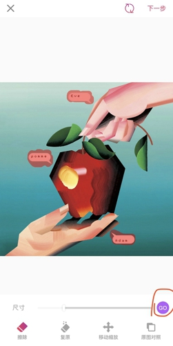 5、在此界面中,默认选择的是“擦除”功能。接着就用手指在图片上的水印处进行涂画。